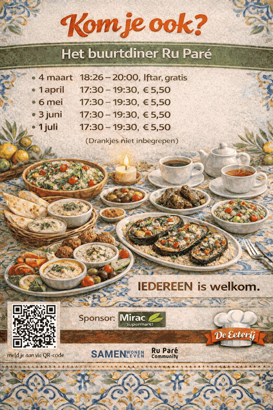Buurtdiner bij Ru Paré 13.02.2026 Kijk voor meer informatie op de website van Ru Paré. Print Mail Reageer