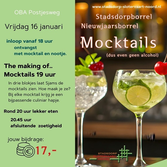 Kom op vrijdag 16 januari naar de nieuwjaarsborrel in de OBA Postjesweg!