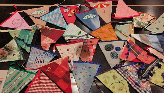 Op woensdagavond 22 april is er weer een creatieve avond waarbij we met elkaar leuke vlaggetjes gaan maken van stof die we met elkaar kunnen verbinden tot slingers. Het is de bedoeling om zoveel mogelijk restmaterialen te gebruiken, zoals bijv. oude dekbedhoezen, oude kleding.